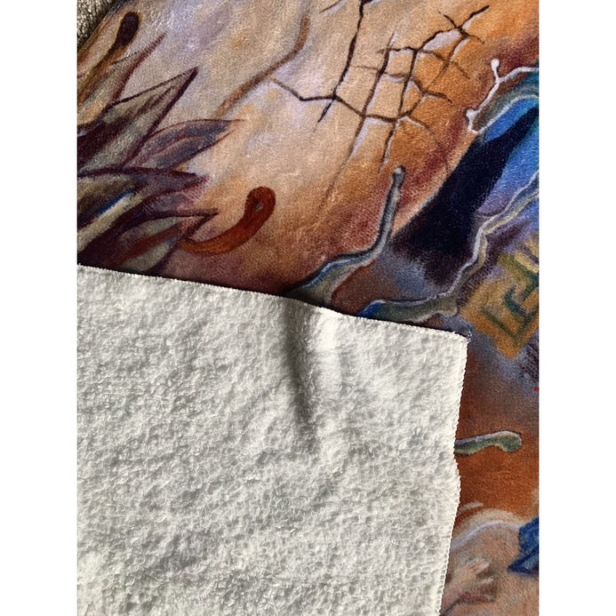 Our blankets are constructed with the highest quality materials we can find. One side of the blanket is 100% Sherpa wool while the other side is a hundred percent polyester velour. We must have the highest quality polyester in order for us to be able to sublimate the image that Anton created on the blanket. Sublimation is a new dye process where the inks bind with the polyester fibers and then become part of the fiber thus guaranteeing that the image will never fade. This is the newest dying process and literally copies the painting itself to a product with clarity and visual Beauty. I felt it was important to make sure our product is the best since I believe our artist is the best. Our blankets are double stitched completely around and machine washable and guaranteed to last. If you want the best blankets with one of the best artists of our time, Anton Brzezinski, you have to buy it here . We are the only Company able to create products guaranteed to be authentic by Anton Brzezinski and have the exclusive rights to do so. Anyone else will be pursued for copyright infringement laws and fully prosecute