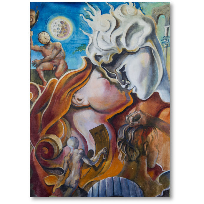 This painting is based upon one of the most famous love stories of all time, Romeo and Juliet. Now remember even though that this appears to be occurring at a much earlier period such as in early Greek times Anton is a surreal artist and can paint an idea and place it at any. period of time. Surrealism is based upon ideas being extremely creative and none of it has to be based upon a reality.