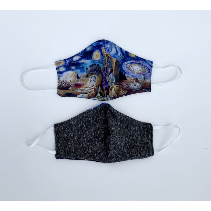 This is a very interesting painting and can be compared to Van Gogh's starry night in Anton's own surreal composition. In the background you have the thick Strokes and flamboyant looking stars and planets such as in Van Gogh's work but in the Forefront you have something completely different. This painting shows many of the things an ordinary individual would love to own and possess. You can see a large mansion which shows the desire of many individuals, this is also expressed with the woman having a necklace with a large flamboyant ruby hanging from it and a creature standing in the background with many keys floating in space showing that he has many possessions under lock and key. What Anton makes clear is that in the Forefront of the painting with a plate with some sparsely spread edibles shows what is truly needed for the ordinary man who is content.