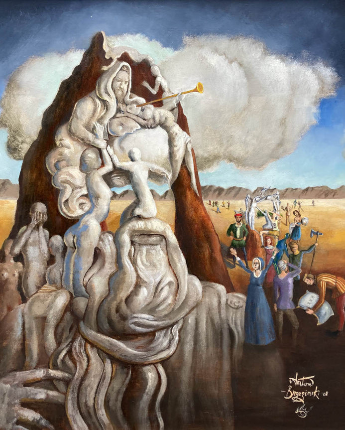 This incredible religious painting shows Anton's creative mind and how he depicts Moses, who is formed out of several different people positioned carefully to create his hair and the outline of his face. The use of shading and color is that of a master artist. In the background you can see him leading the Israelites through the desert after they fled from Egypt. At a time of such hardship you can look at this painting and see joy and jubilation and feel a sense of what those people must have felt over two-thousand years ago.